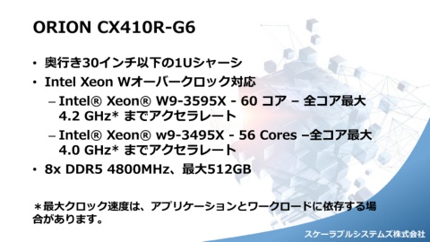 – Intel® Xeon® W9-3595X - 60 コア – 全コア最大