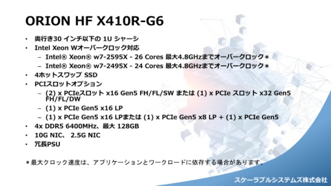 – (2) x PCIeスロット x16 Gen5 FH/FL/SW または (1) x PCIe スロット x32 Gen5