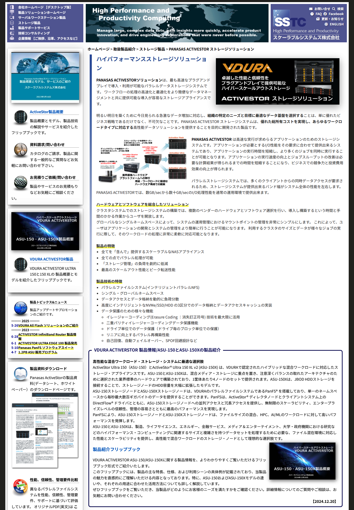 Scalable Systems は20年以上にわたり、Panasas / VDURA 並列ストレージの導入および運用支援に携わってきました。 現在も、過去に導入された Panasas / ActiveStor システムに対するサポートおよび技術支援を継続しています。 保守対応、障害対応、構成確認、移設やリプレースのご相談など、既存環境の運用に必要な技術支援を行っています。 研究機関・大学・企業の HPC 環境におけるストレージ運用の経験をもとに、実運用に即した技術支援を提供しています。